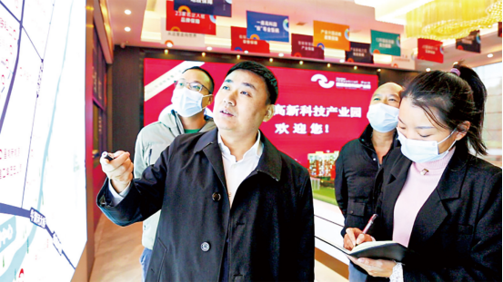 胡治国(前左)在介绍产业园情况。受访者供图